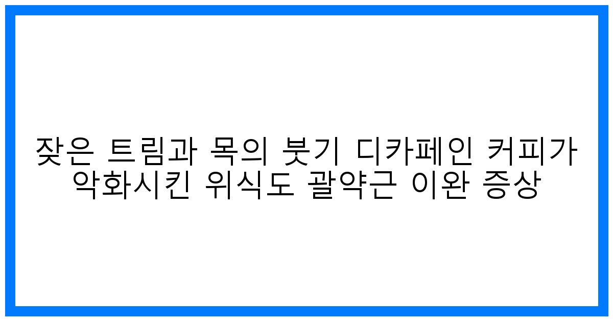 혹시 잦은 트림과 목의 붓기로 고생하고 계신가요? 속이 불편하고 목이 답답한 느낌, 혹시 디카페인 커피 때문일 수도 있습니다. 많은 분들이 카페인 걱정 없이 커피를 즐기기 위해 디카페인 커피를 선택하지만, 아이러니하게도 디카페인 커피가 위식도 괄약근을 이완시켜 위산 역류를 유발하고, 그 결과 잦은 트림과 목의 붓기와 같은 불쾌한 증상을 악화시킬 수 있다는 사실을 간과하는 경우가 많습니다. 이번 글에서는 디카페인 커피가 어떻게 위식도 괄약근에 영향을 미치는지, 그리고 이러한 증상을 완화하기 위한 방법은 무엇인지 자세히 알아보겠습니다.